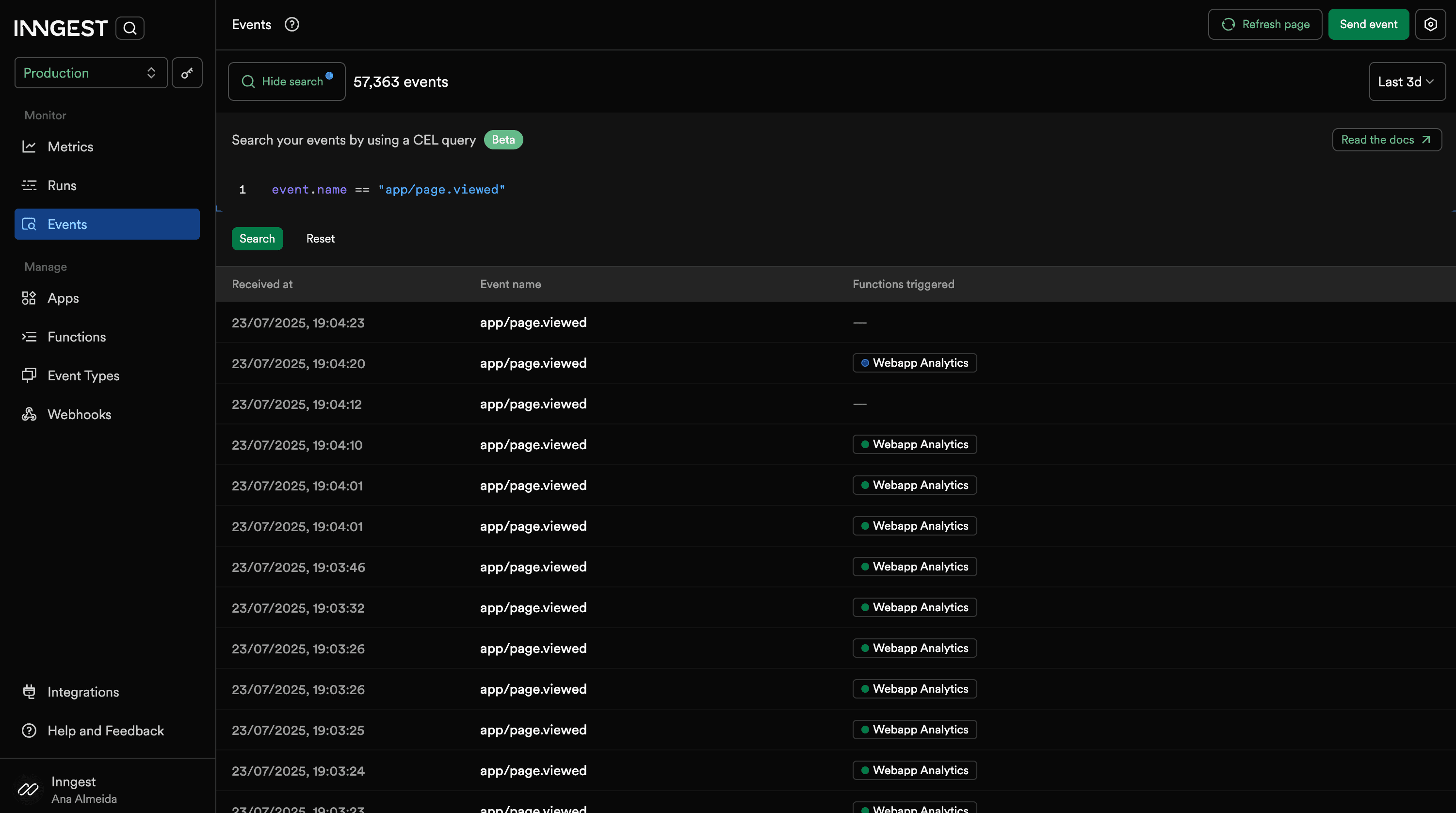 In addition to searching by event and run ID, you can now find results by app, event, and function names, making it easier than ever to locate what you need in each environment.